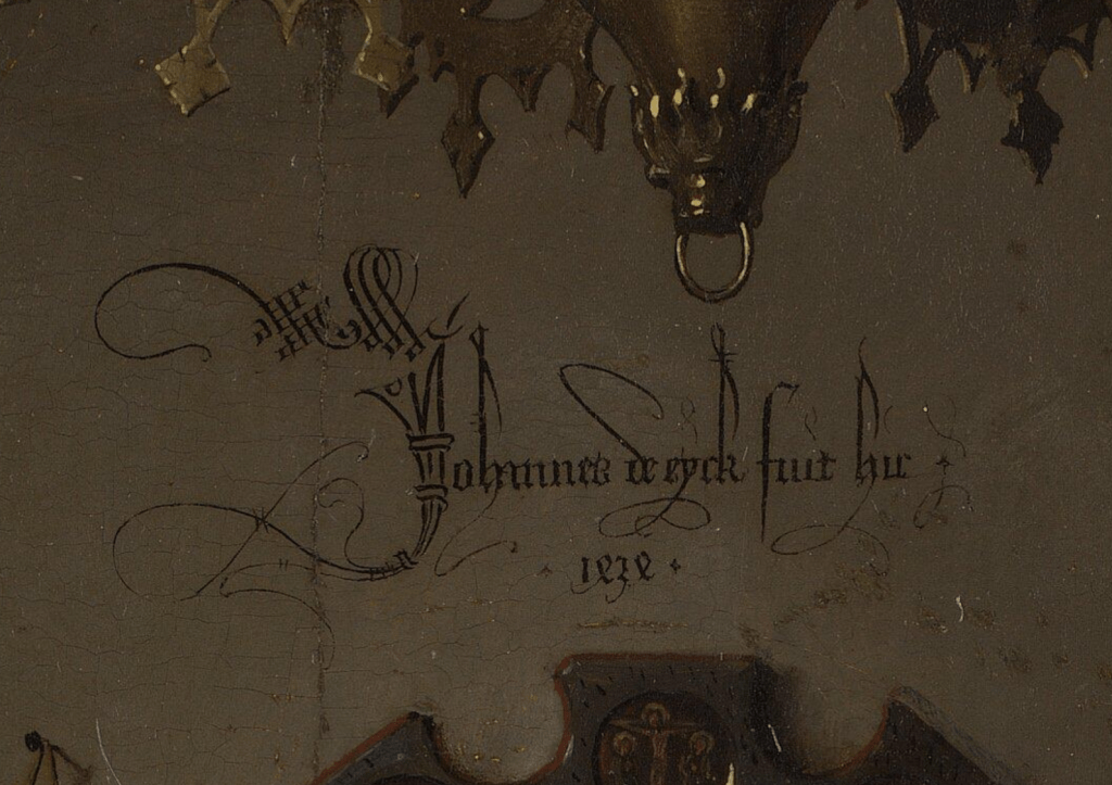 Johannes de Eyck fuit hic. 1434 (‘얀 반 에이크가 여기에 있었다. 1434’)